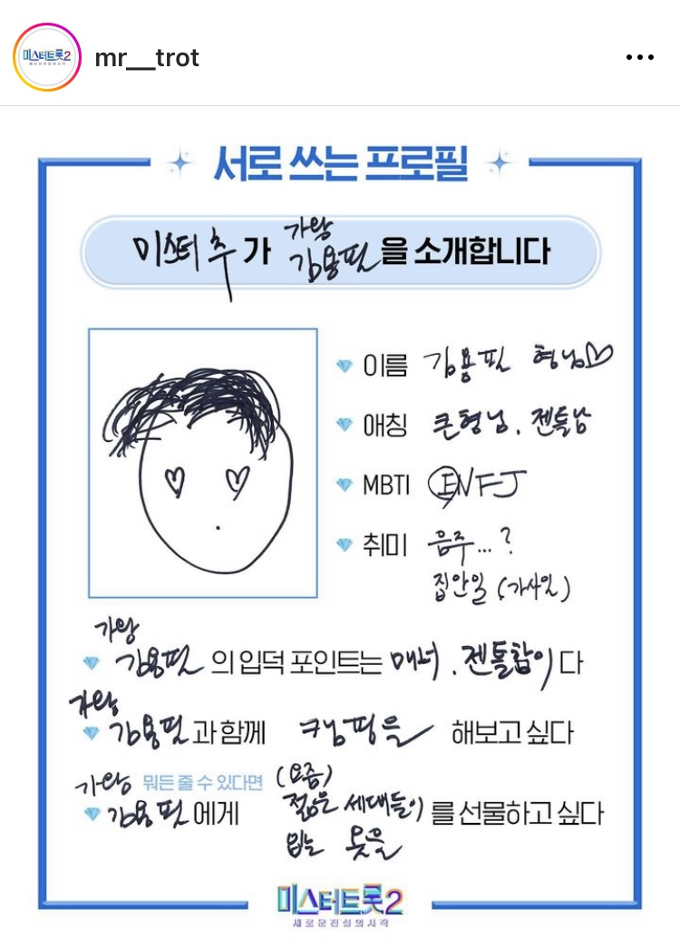 [ミスタートロット2]キム・ヨンピル X チュ・ヒョクジン ♥互いに書くプロフィール♥