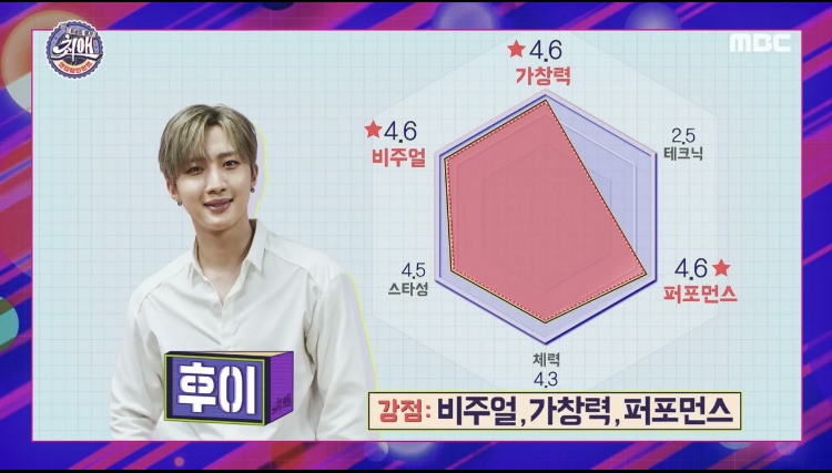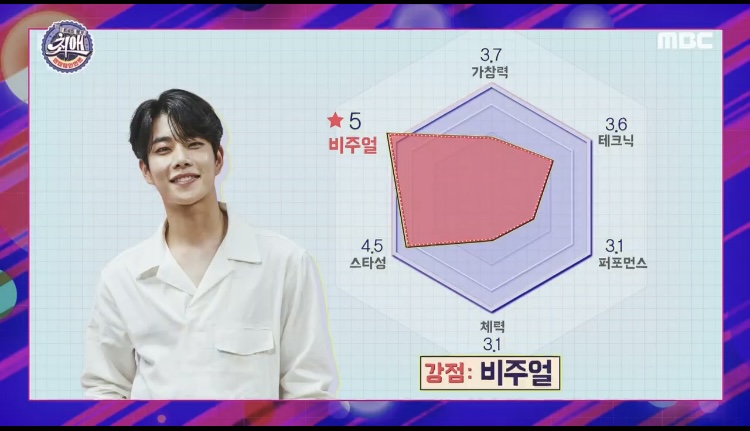 上から時計回りに歌唱力・テクニック・パフォーマンス・体力・スター性・ビジュアル