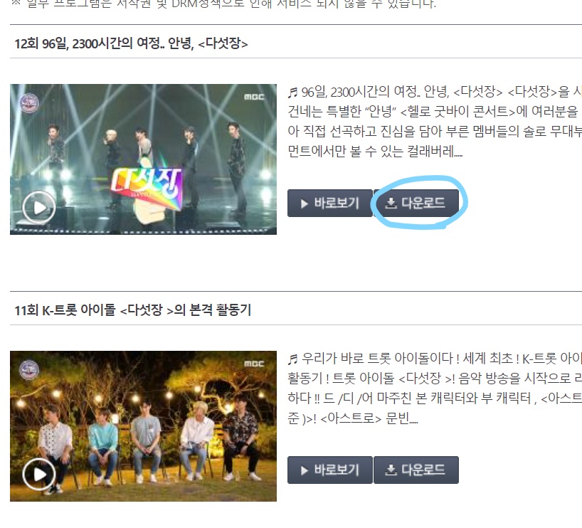 見たい回の「다운로드」(ダウンロード)をクリックします