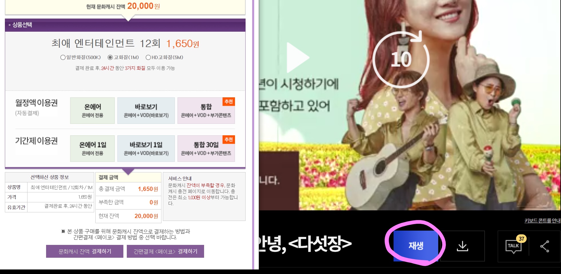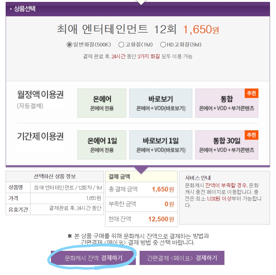 「문화캐시 잔액 결제하기」(文化キャッシュ残額決済)で決済できます