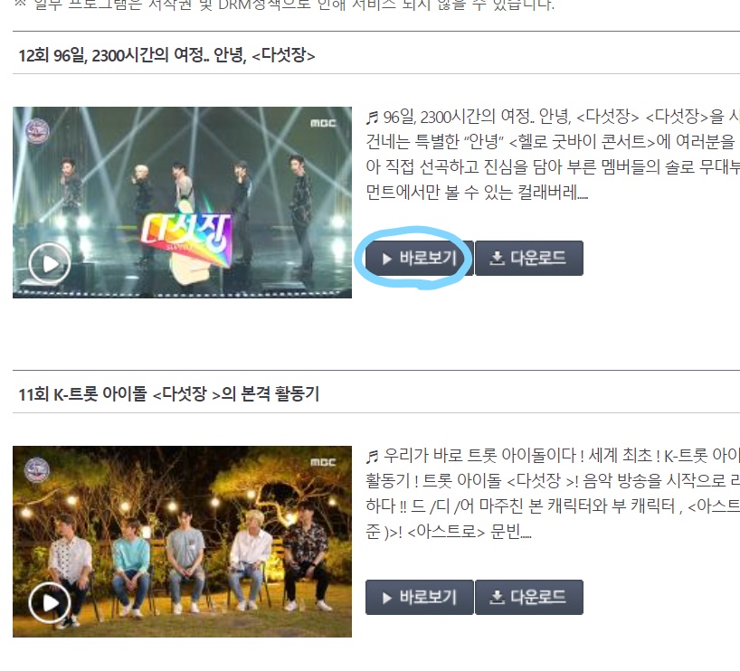 再視聴には以下の2種類があります・「바로보기」パロポギ(ストリーミング再生)