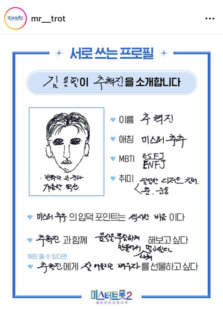 20230306「ミスタートロット2」互いに書くプロフィール【チュ・ヒョクジン】