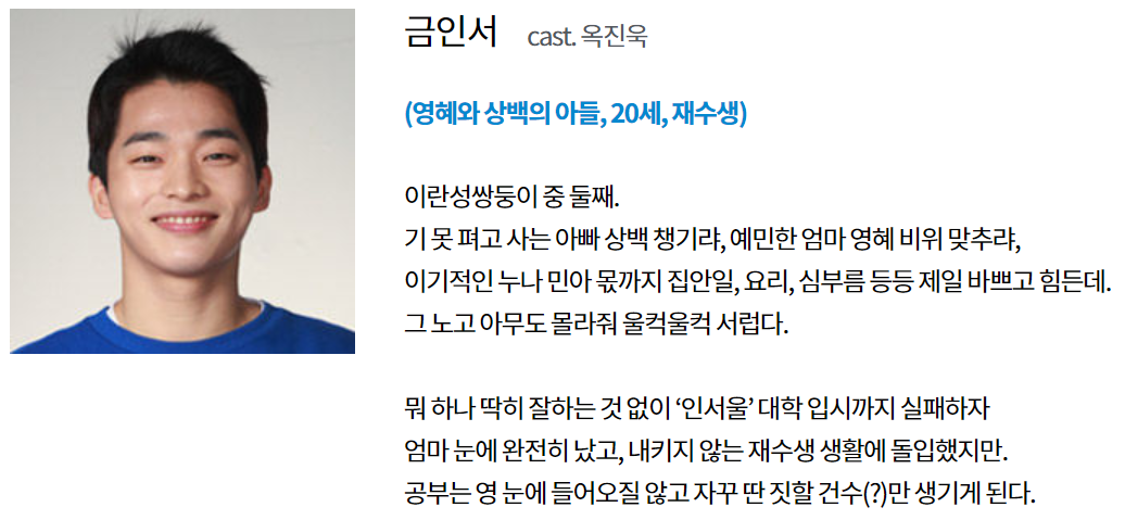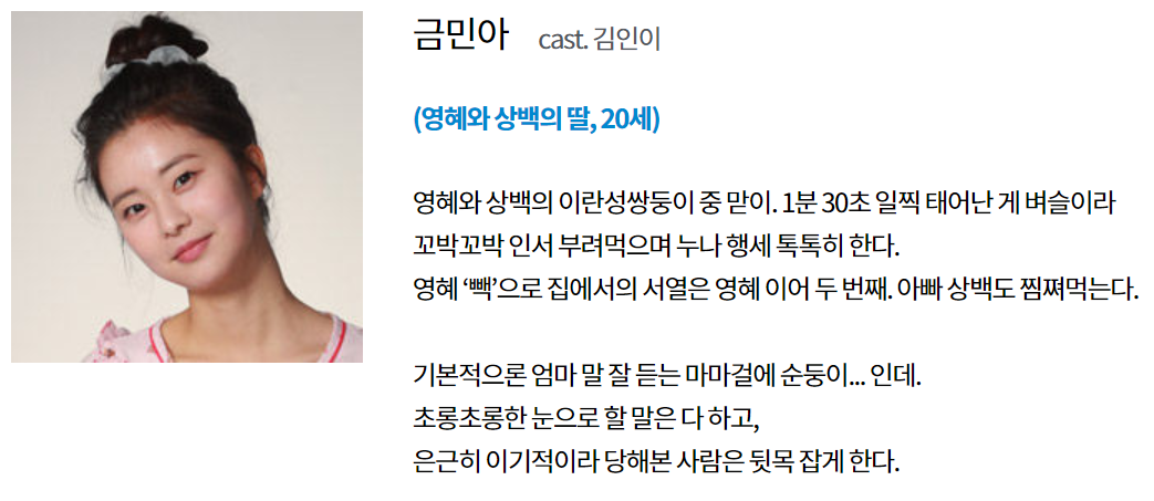 番組サイトには掲載されていない、クム・インソとクム・ミナの人物紹介です。